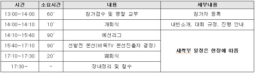 참가부문 | 대회형식 | 비고 |